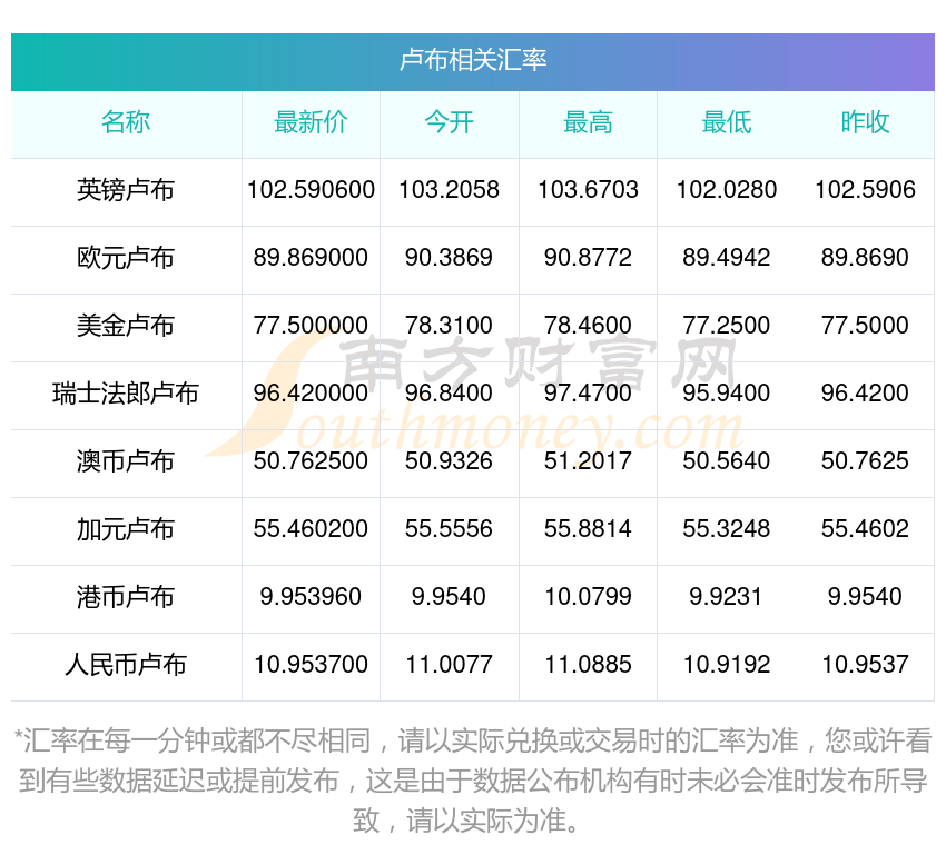 南方財富網(wǎng)為您提供盧布對菲律賓比索匯率最新價格詳情。