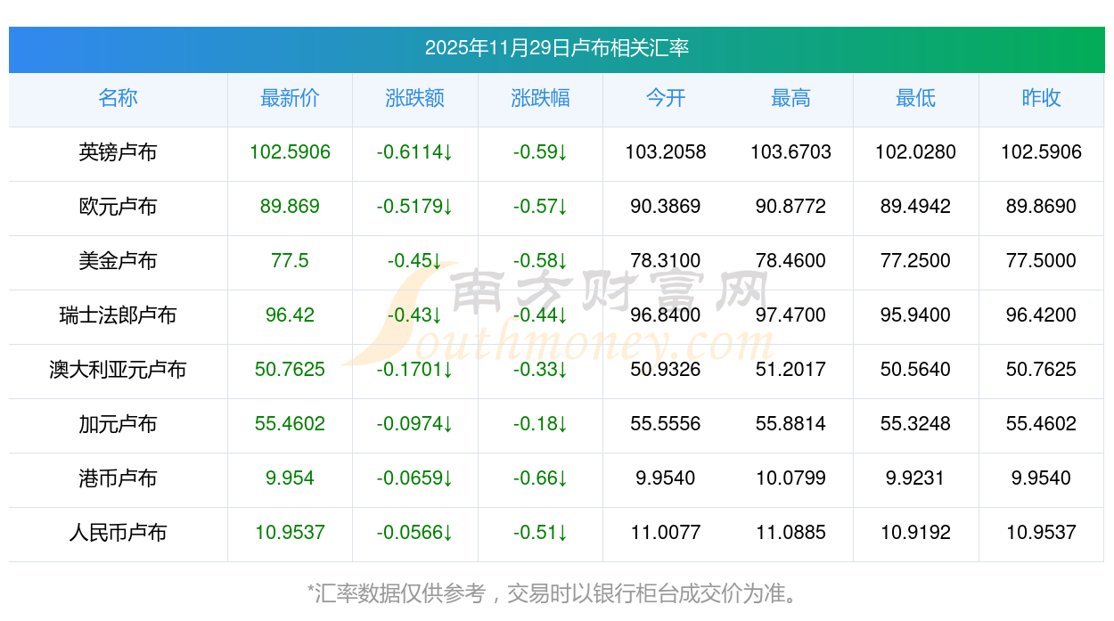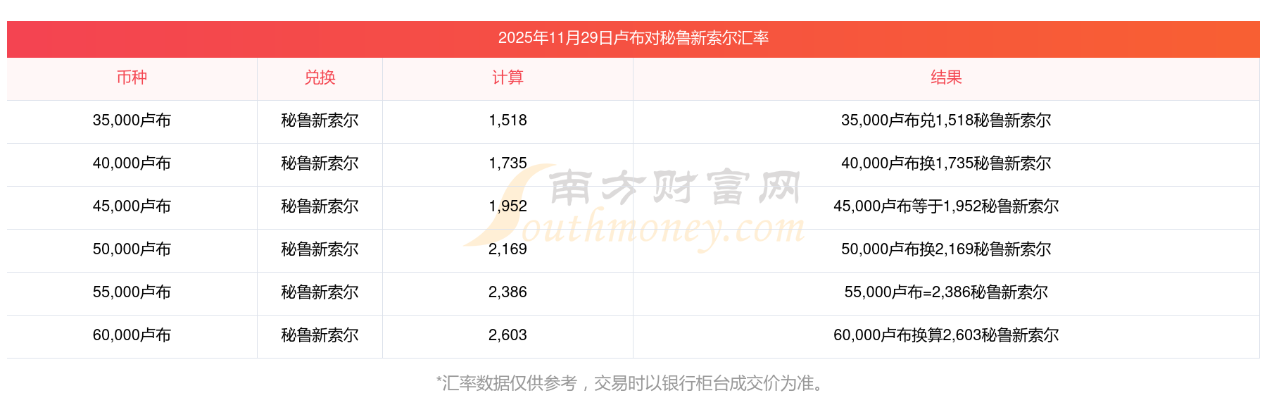 南方財富網為您提供盧布對秘魯新索爾匯率最新價格詳情。