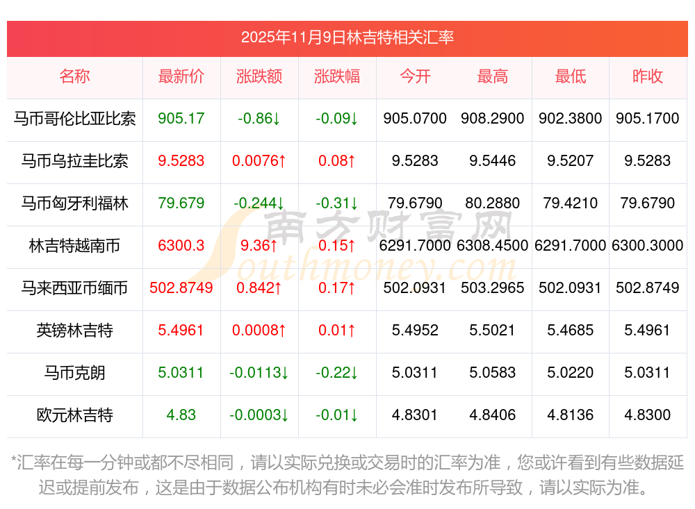 2025年11月9日林吉特相關(guān)匯率查詢(xún)