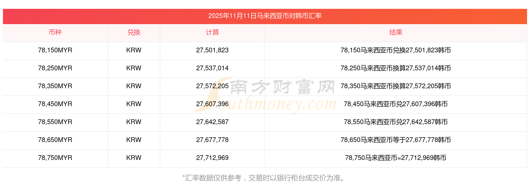 今日匯率調(diào)整_1030馬來西亞幣對(duì)韓幣匯率查詢2025-11-11