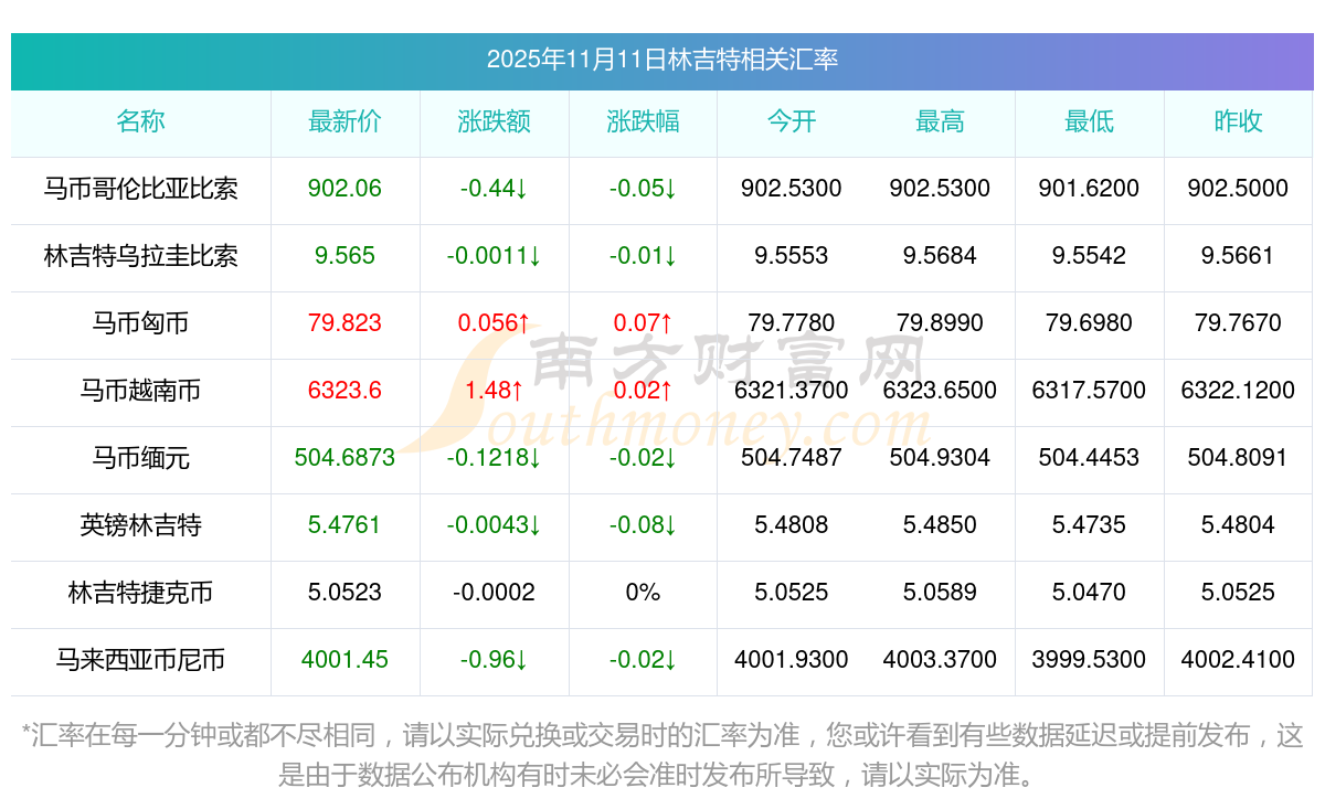 2025年11月11日林吉特相關(guān)匯率查詢