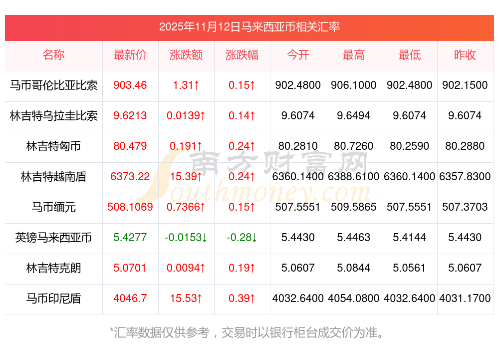 2025年11月12日馬來西亞幣相關(guān)匯率查詢