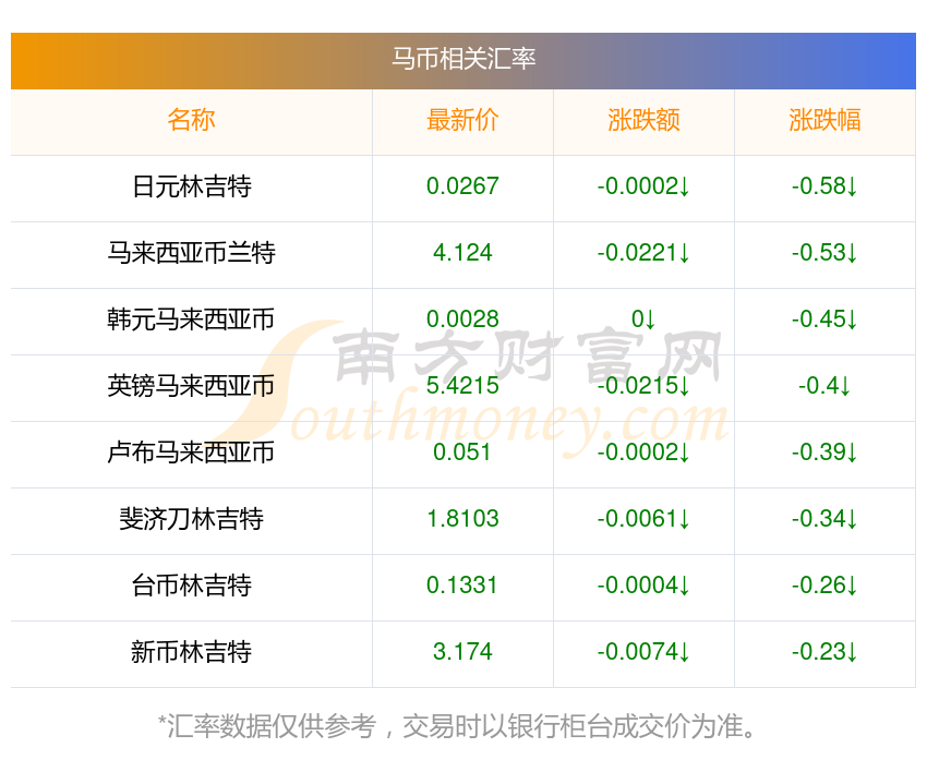 南方財富網(wǎng)為您提供馬幣對緬元匯率最新價格詳情。