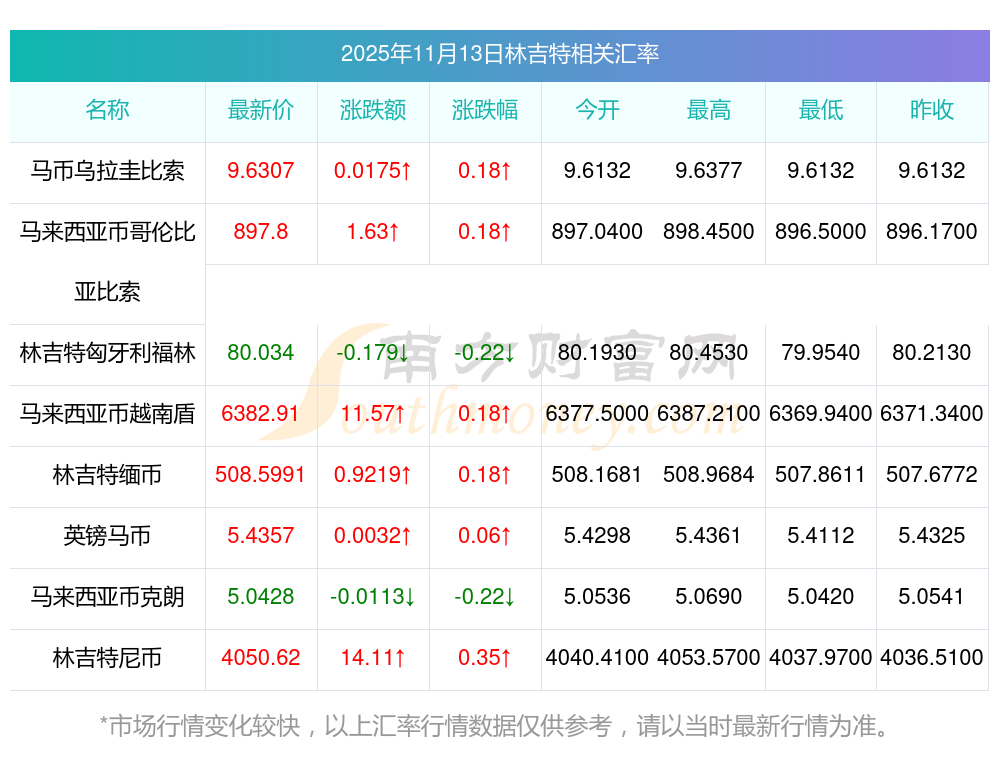 南方財富網(wǎng)為您提供林吉特對緬幣匯率最新價格詳情。