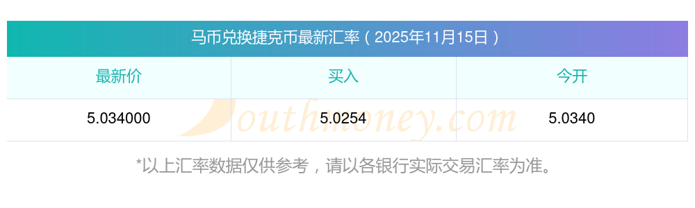 2025年11月15日馬幣兌換捷克幣的匯率為:5.034