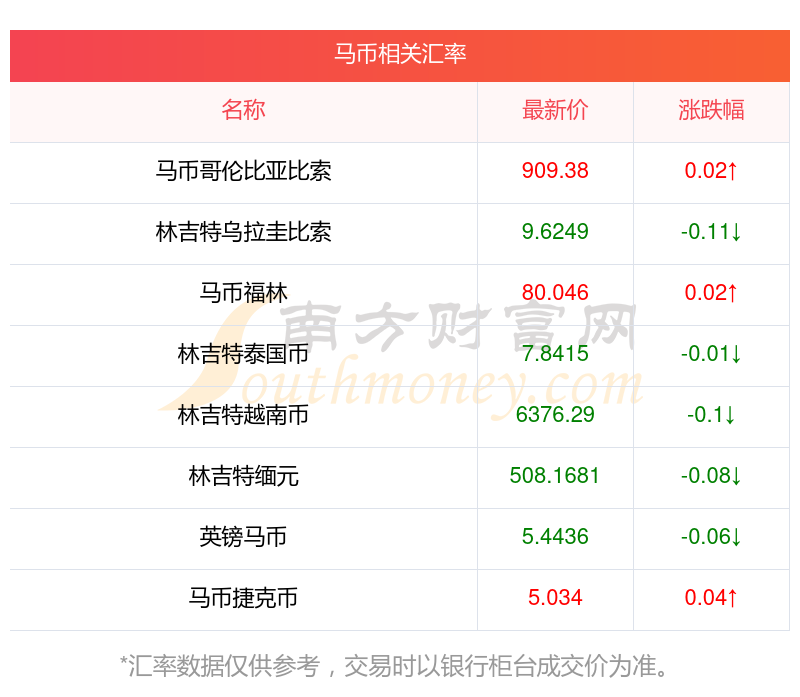 南方財(cái)富網(wǎng)為您提供馬幣對(duì)捷克幣最新價(jià)格詳情。