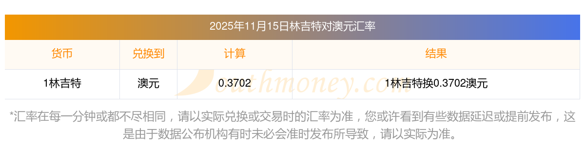 2025年11月15日25林吉特計(jì)算澳元等于多少?