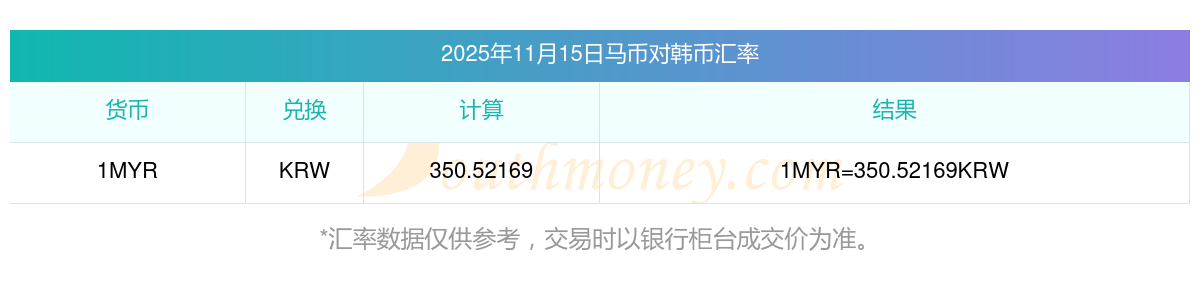 馬幣對韓幣匯率今日查詢? (2025-11-15)