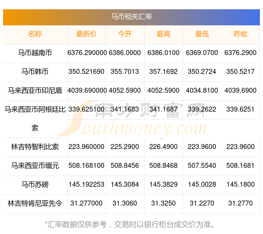 南方財富網(wǎng)為您提供馬幣對韓幣匯率最新價格詳情。