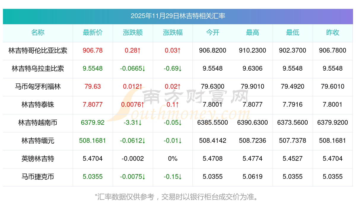2025年11月29日林吉特相關匯率查詢