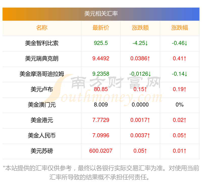 匯率在每一分鐘或都不盡相同,請以實際兌換或交易時的匯率為準,您或許看到有些數(shù)據(jù)延遲或提前發(fā)布,這是由于數(shù)據(jù)公布機構有時未必會準時發(fā)布所導致,請以實際為準。