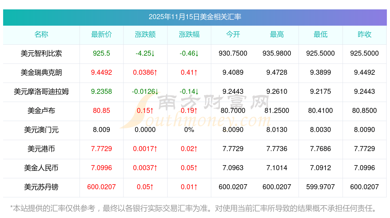 根據(jù)2025年11月15日匯率,美金兌換烏拉圭比索匯率最新39.780000,今開(kāi)39.7800,昨收39.7800,最高39.7900,最低39.7500。
