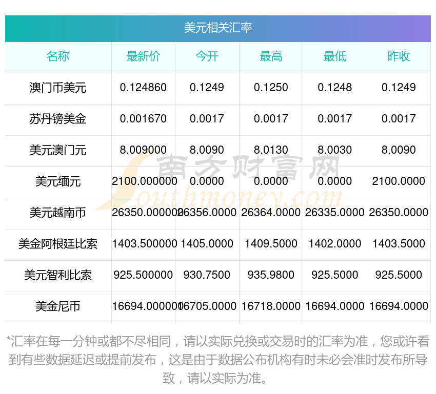 南方財富網(wǎng)為您提供美元對緬元匯率最新價格詳情。