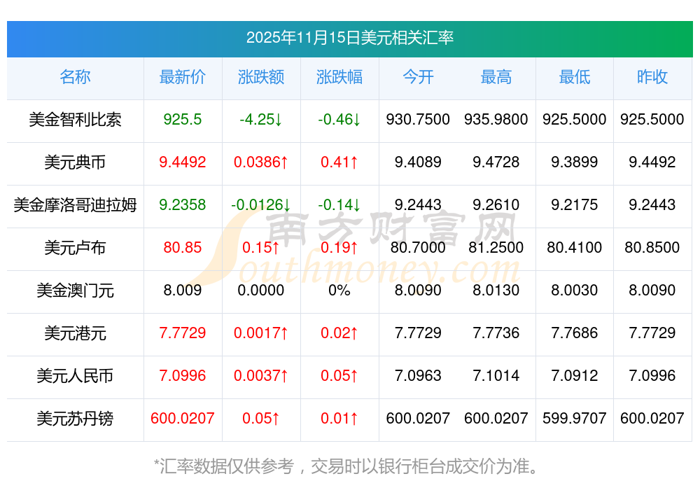 根據(jù)2025年11月15日匯率,美元兌換盧布匯率最新價80.850000,今開價80.7000,昨收價80.8500,最高價81.2500,最低價80.4100。