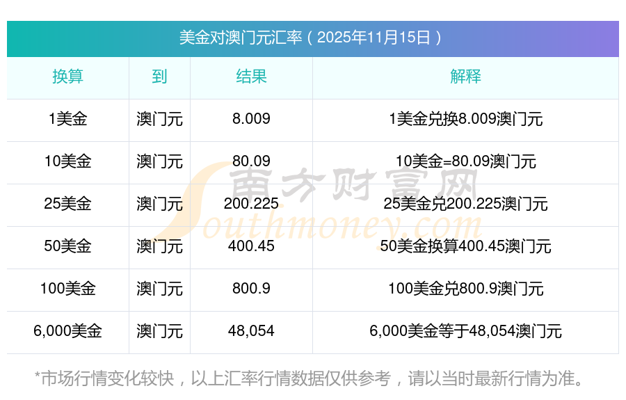 今天美金對澳門元匯率_13美金對澳門元匯率查詢(2025/11/15)