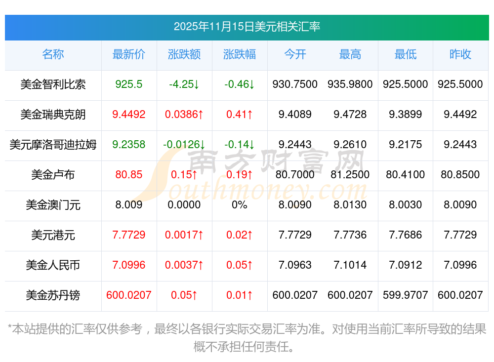 根據(jù)2025年11月15日匯率,美元兌換臺(tái)幣匯率最新30.739000,今開31.1350,昨收30.7390,最高31.1880,最低30.6710。
