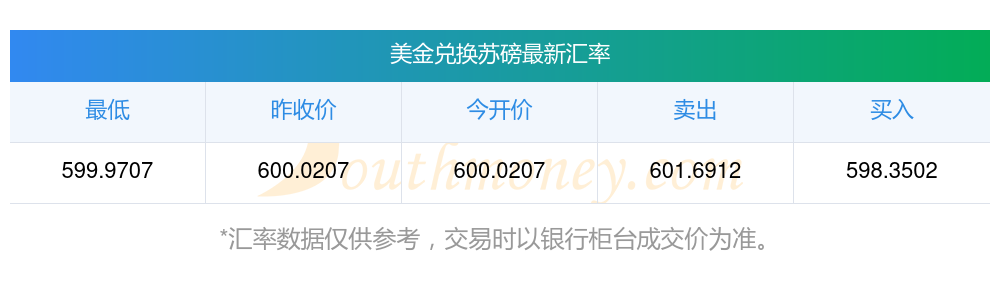 南方財(cái)富網(wǎng)為您提供美金對(duì)蘇磅匯率最新價(jià)格詳情。