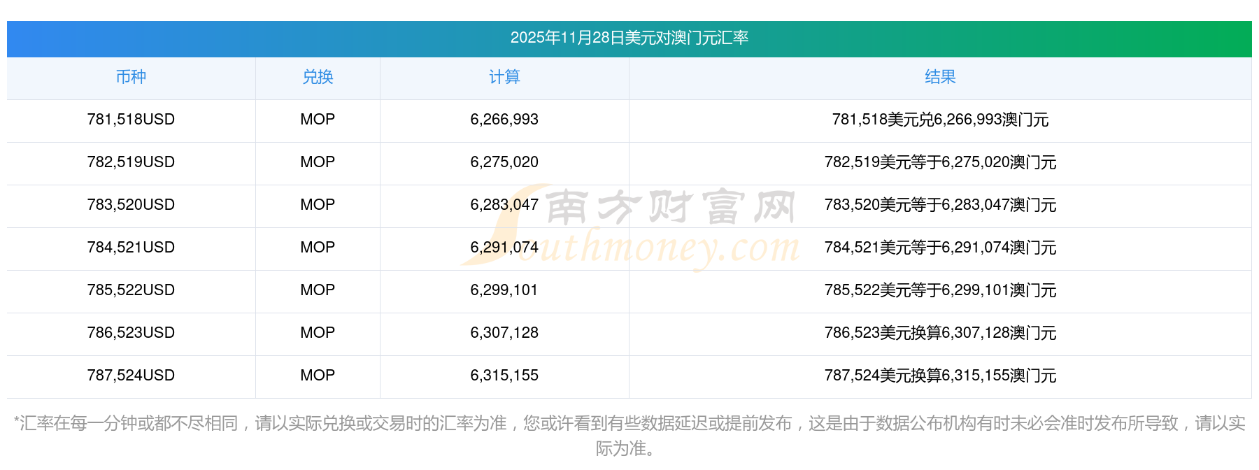 南方財(cái)富網(wǎng)小編為您提供美元兌換澳門元匯率最新價(jià)格詳情。