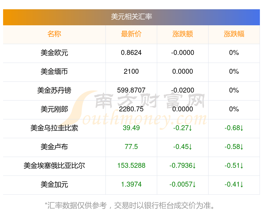 匯率數(shù)據(jù)僅供參考,交易時(shí)以銀行柜臺(tái)成交價(jià)為準(zhǔn)。