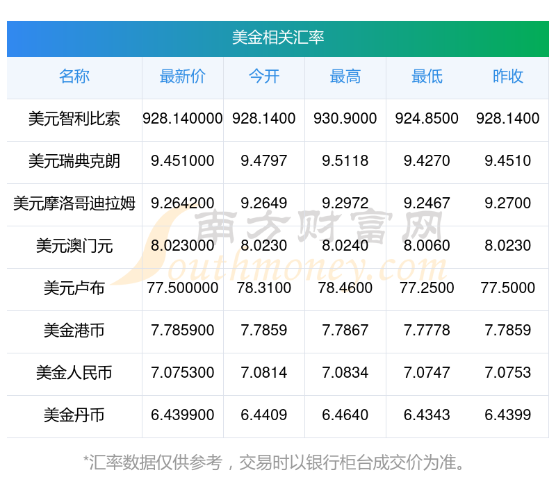 匯率在每一分鐘或都不盡相同,請以實際兌換或交易時的匯率為準,您或許看到有些數(shù)據(jù)延遲或提前發(fā)布,這是由于數(shù)據(jù)公布機構(gòu)有時未必會準時發(fā)布所導(dǎo)致,請以實際為準。