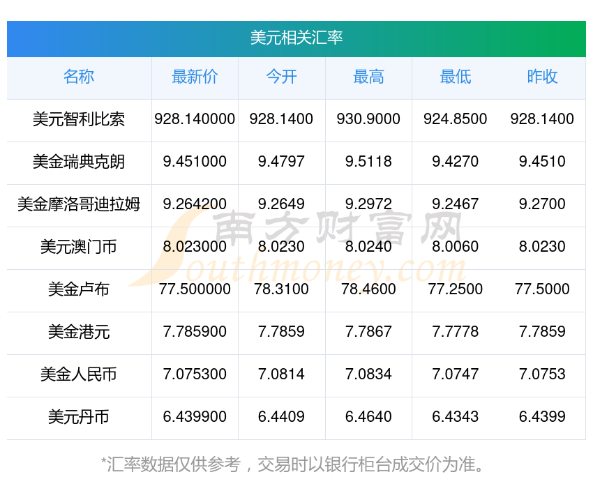 本站提供的匯率僅供參考,最終以各銀行實際交易匯率為準。對使用當前匯率所導致的結果概不承擔任何責任。