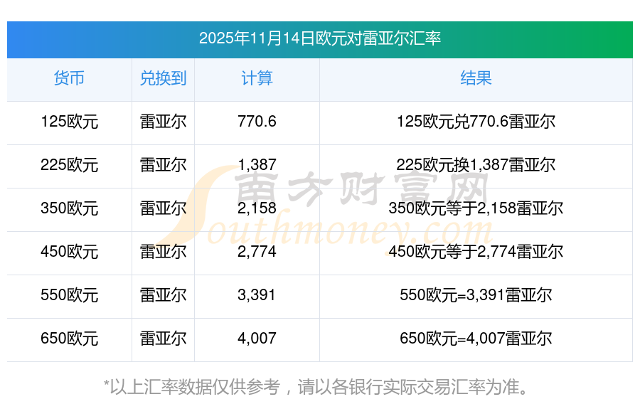 南方財富網為您提供歐元對雷亞爾匯率最新價格詳情。