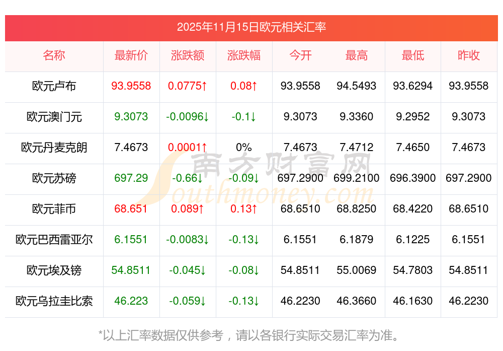 根據(jù)2025年11月15日匯率,歐元兌換澳大利亞元匯率最新價1.777800,今開價1.7778,昨收價1.7778,最高價1.7872,最低價1.7730。