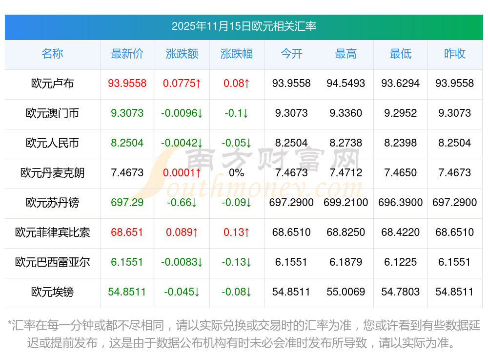 南方財富網(wǎng)為您提供歐元對人民幣匯率最新價格詳情。