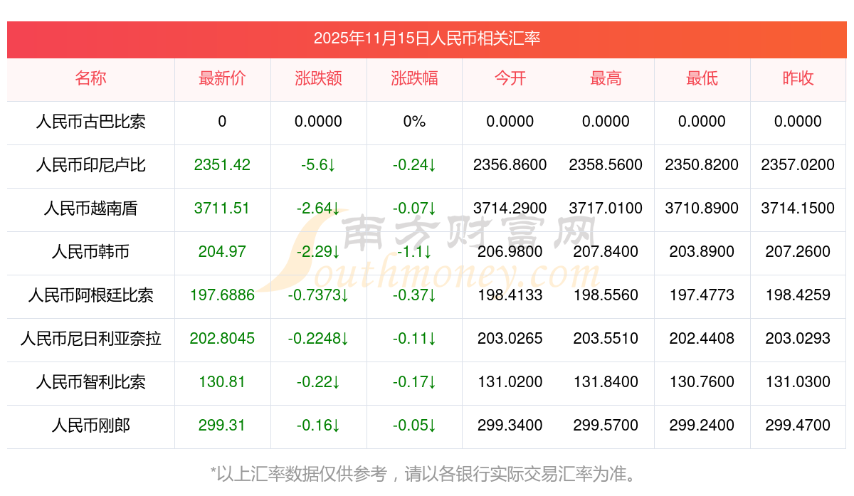 2025年11月15日人民幣相關匯率查詢