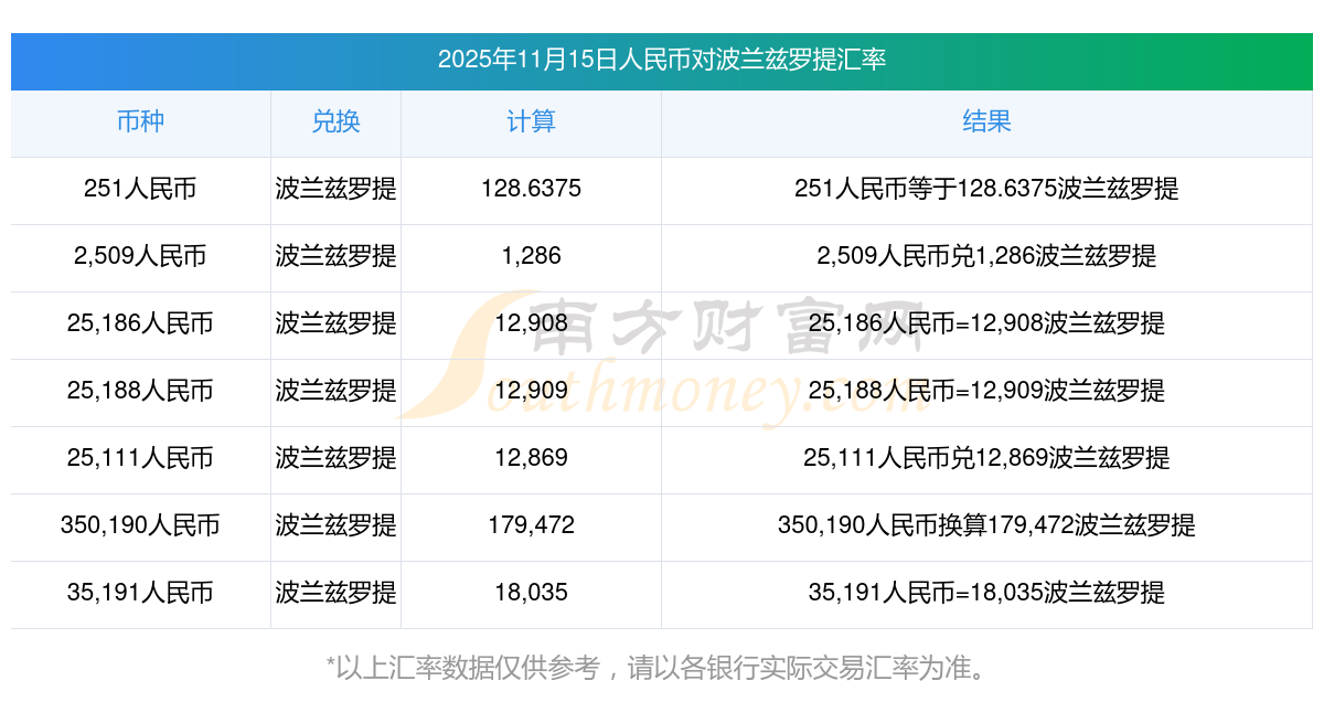 今日人民幣匯率中間價(jià):人民幣對(duì)波蘭茲羅提多少2025/11/15