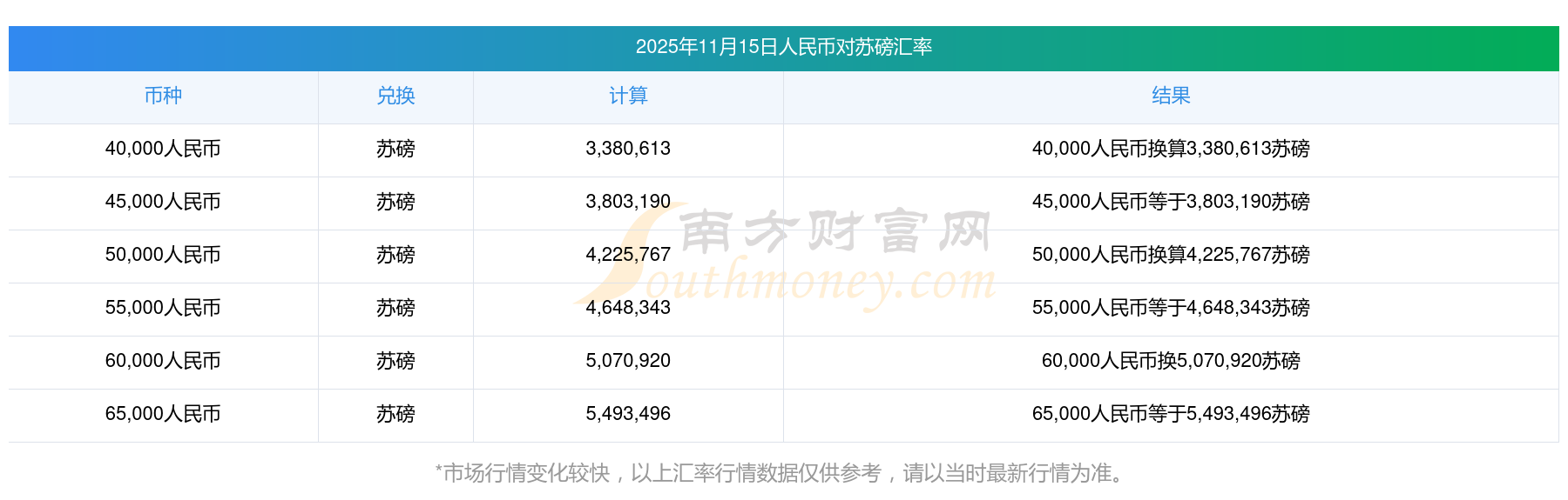 南方財(cái)富網(wǎng)為您提供人民幣兌換蘇磅匯率最新價(jià)格詳情。