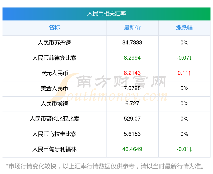 市場(chǎng)行情變化較快,以上匯率行情數(shù)據(jù)僅供參考,請(qǐng)以當(dāng)時(shí)最新行情為準(zhǔn)。