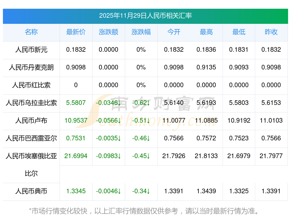 根據(jù)2025年11月29日匯率計(jì)算,CNY兌換UYU匯率最新價(jià)5.580700,今開價(jià)5.6140,昨收價(jià)5.6153,最高價(jià)5.6193,最低價(jià)5.5803。