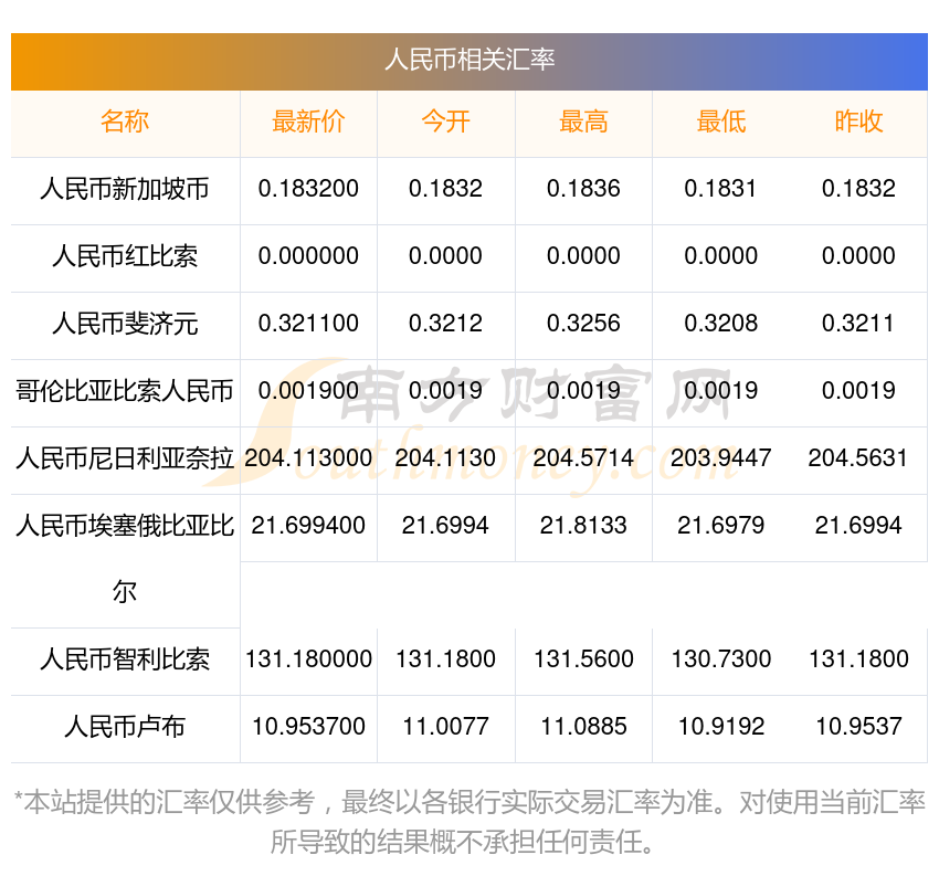 南方財富網(wǎng)為您提供人民幣對尼日利亞奈拉匯率最新價格詳情。