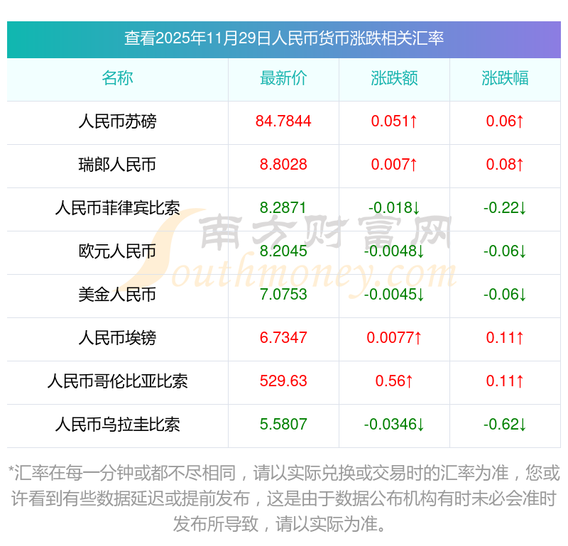 2025年11月29日人民幣相關(guān)匯率查詢(xún)