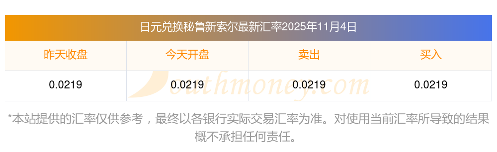 最新12025年11月4日日元兌秘魯新索爾匯價(jià)?