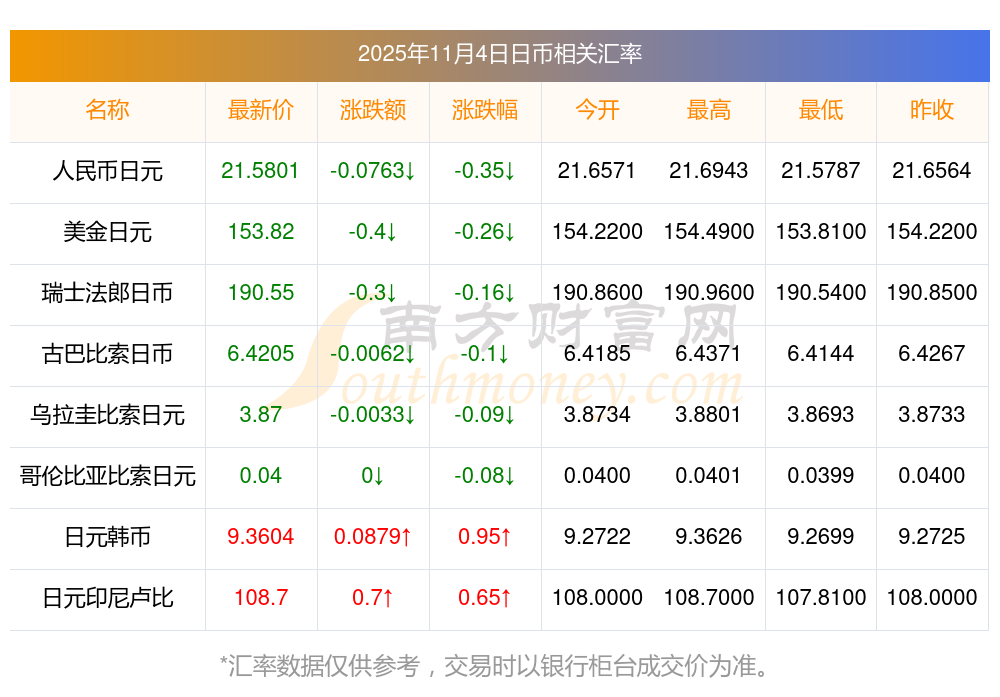 根據(jù)2025年11月4日匯率計(jì)算,JPY兌換HUF匯率最新價(jià)2.187330,今開價(jià)2.1808,昨收價(jià)2.1808,最高價(jià)2.1882,最低價(jià)2.1782。