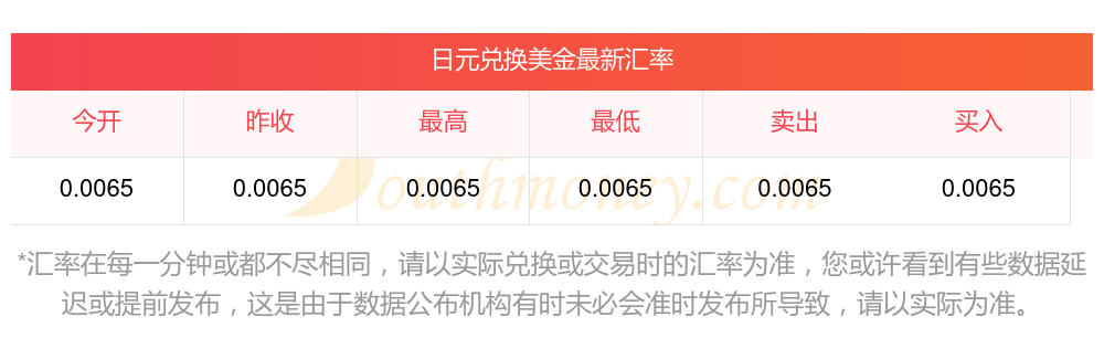 匯率在每一分鐘或都不盡相同,請(qǐng)以實(shí)際兌換或交易時(shí)的匯率為準(zhǔn),您或許看到有些數(shù)據(jù)延遲或提前發(fā)布,這是由于數(shù)據(jù)公布機(jī)構(gòu)有時(shí)未必會(huì)準(zhǔn)時(shí)發(fā)布所導(dǎo)致,請(qǐng)以實(shí)際為準(zhǔn)。