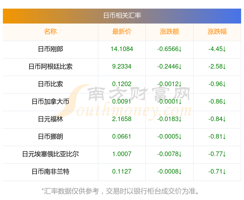 匯率在每一分鐘或都不盡相同,請以實(shí)際兌換或交易時的匯率為準(zhǔn),您或許看到有些數(shù)據(jù)延遲或提前發(fā)布,這是由于數(shù)據(jù)公布機(jī)構(gòu)有時未必會準(zhǔn)時發(fā)布所導(dǎo)致,請以實(shí)際為準(zhǔn)。