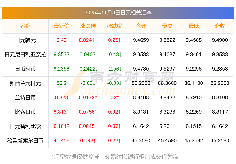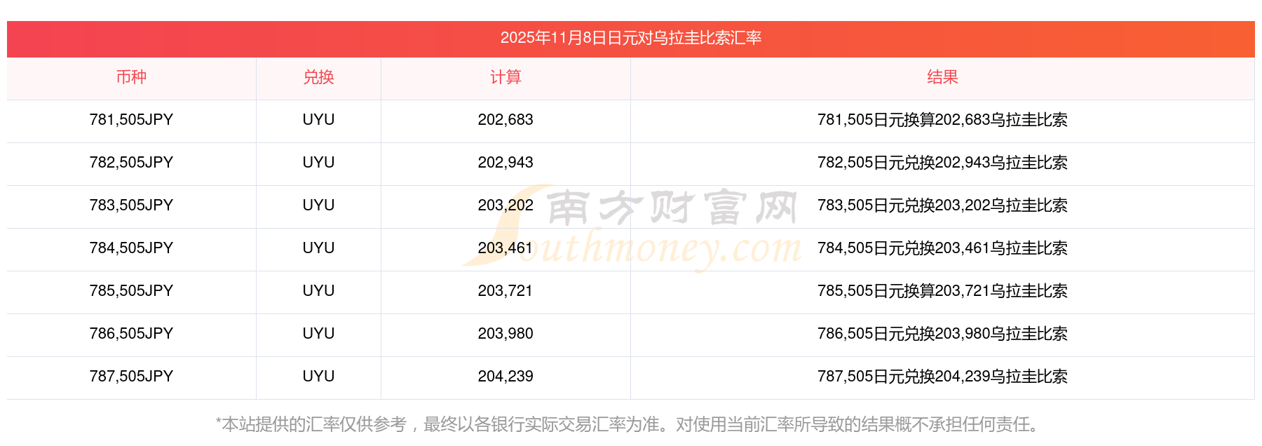 日元對烏拉圭比索匯率今日匯率查詢表11月8日
