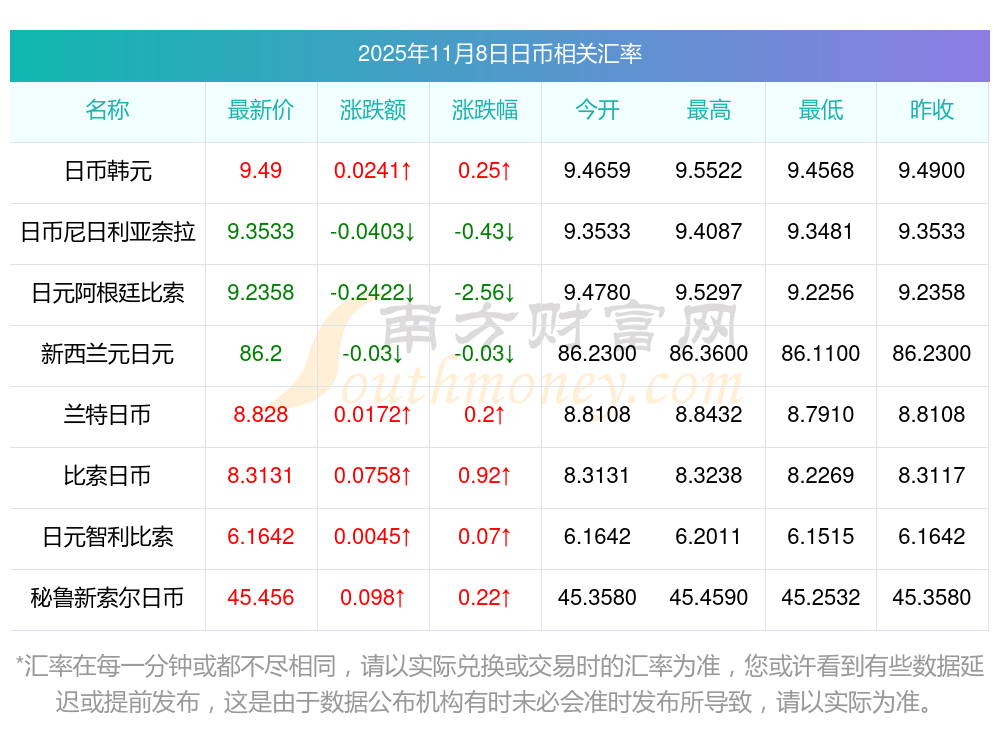 根據(jù)2025年11月8日匯率,日幣兌換緬元匯率最新13.687500,今開13.7197,昨收13.6875,最高13.7417,最低13.6724。