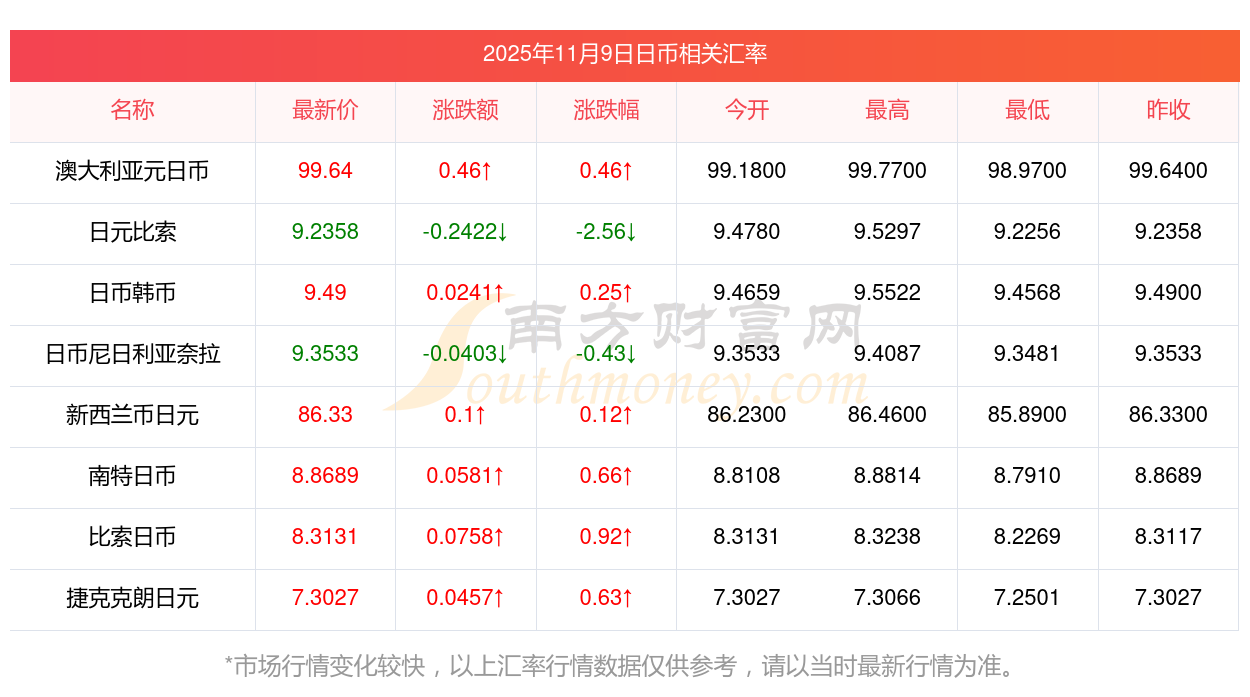 根據(jù)2025年11月9日匯率計算,JPY兌換CAD匯率最新價0.009157: