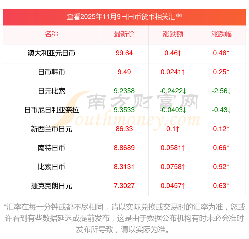 根據(jù)2025年11月9日匯率計算,JPY兌換AUD匯率最新價0.010037:今開價0.0101,昨收價0.0100,最高價0.0101,最低價0.0100。