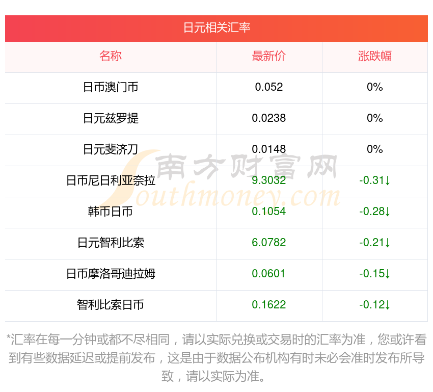 南方財富網(wǎng)為您提供日元對新臺幣匯率最新價格詳情。