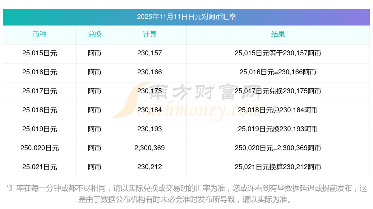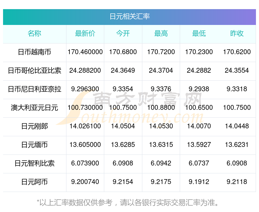 南方財富網(wǎng)為您提供日元對阿幣匯率最新價格詳情。