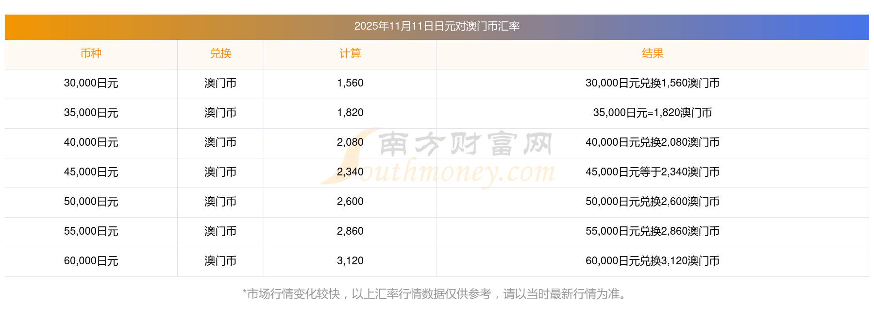 日元對澳門幣匯率中間價_今天日元換澳門幣計算多少?2025/11/11