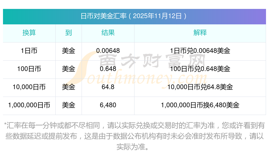 現(xiàn)在1日元與美元的匯率是多少?2025-11-12