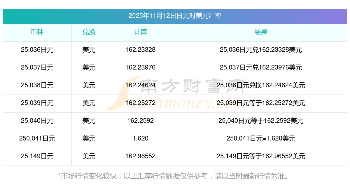 今天2025年11月12日最新匯率計(jì)算查詢: