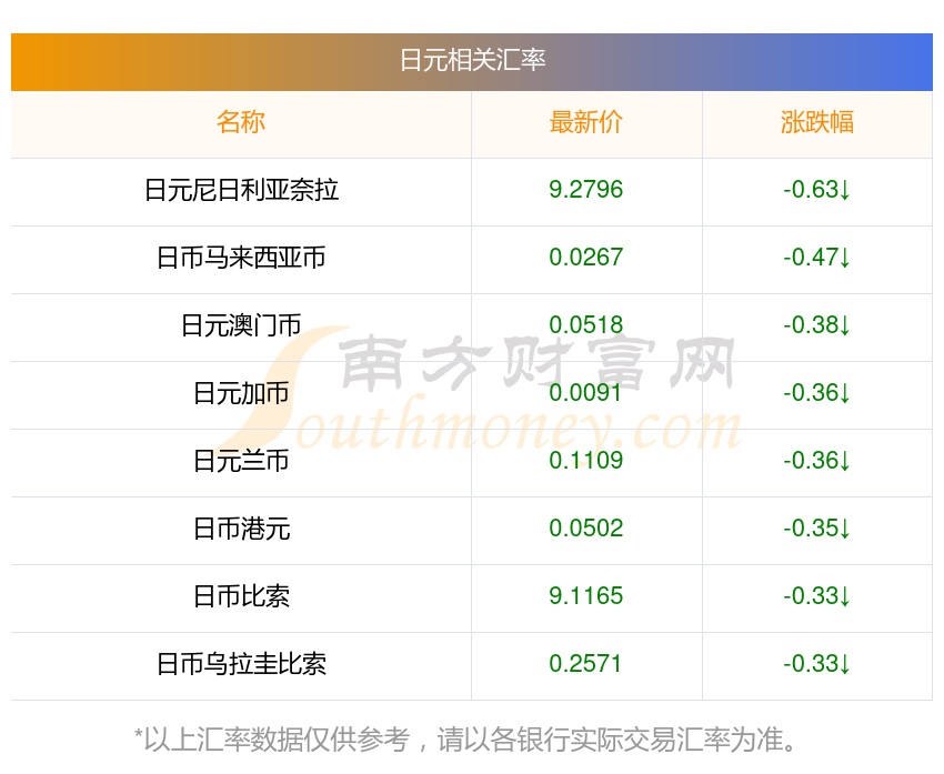匯率在每一分鐘或都不盡相同,請以實際兌換或交易時的匯率為準,您或許看到有些數(shù)據(jù)延遲或提前發(fā)布,這是由于數(shù)據(jù)公布機構有時未必會準時發(fā)布所導致,請以實際為準。