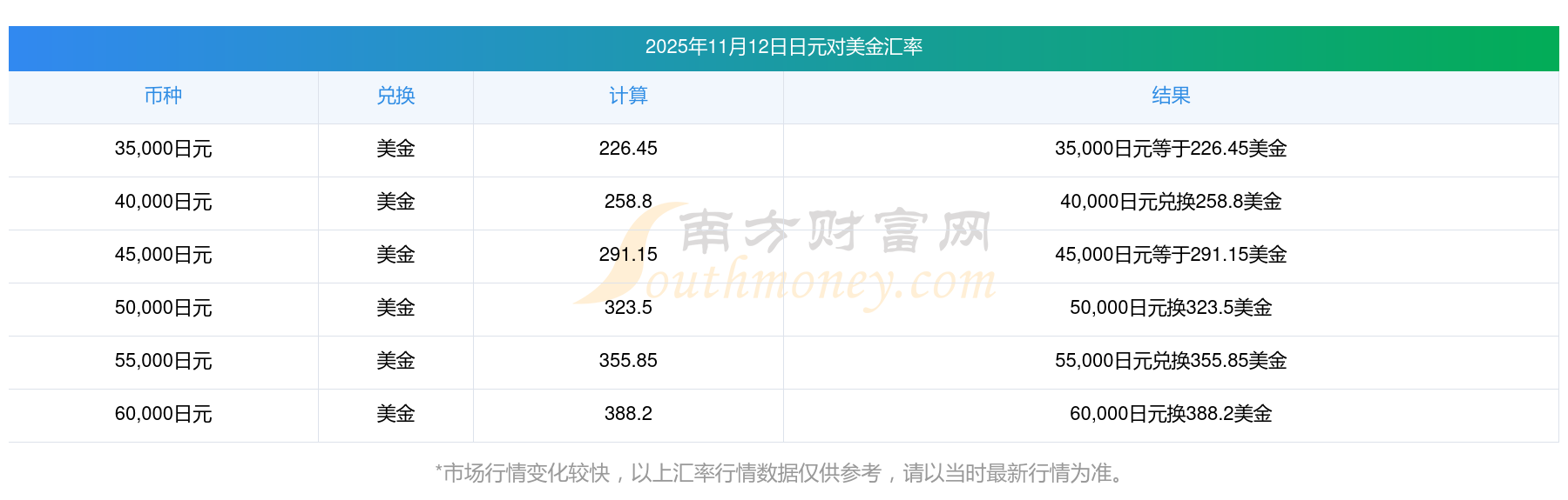 2025年11月12日日元與美金的兌換匯率計算如下: